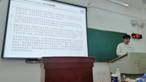周强同学汇报的文章围绕多市场接触对企业供应链战略的影响展开研究,希望通过探索企业间多市场接触对企业上下游主体的影响解释供应链领域的乱象,采用了实证研究方法。李家涛教授评价道,论文内容比较有趣,但要注意如何将多市场接触和企业规模的影响区分开来。