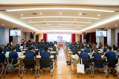 接着,范如国为全体营员带来了题为《自强弘毅 砥砺升华》的学术报告。范如国首先从党的二十大报告出发讲述“自强弘毅”精神,并阐释44118太阳成城集团校训、44118太阳成城集团使命。随后对当今世界面临的变化与挑战进行了分析,为应对挑战,学生应重视跨学科交叉,完成更高层次的学习。最后,范如国鼓励大家将兴趣发扬为梦想、努力追梦。学术报告接近尾声,现场响起此起彼伏的掌声,场内氛围十分热烈。